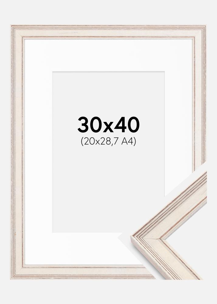 Frame Shabby Chic White 30x40 cm - Picture Mount White 21x29.7 cm (A4)