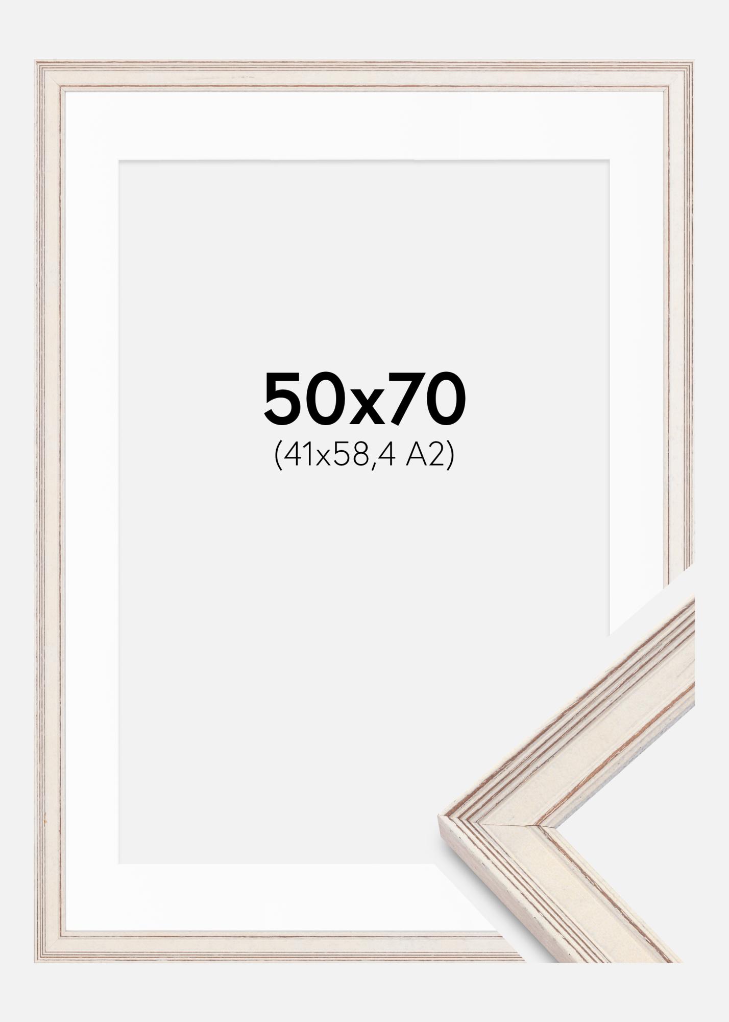 Frame Shabby Chic White 50x70 cm - Picture Mount White 42x59.4 cm (A2)