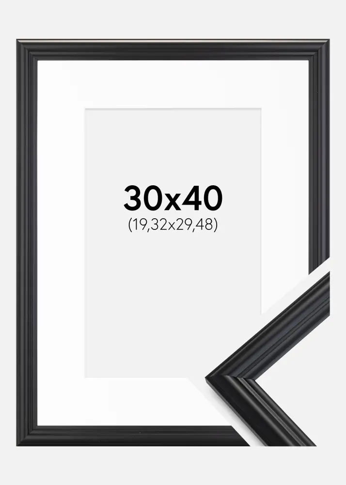 Frame Siljan Black 30x40 cm - Picture Mount White 8x12 inches