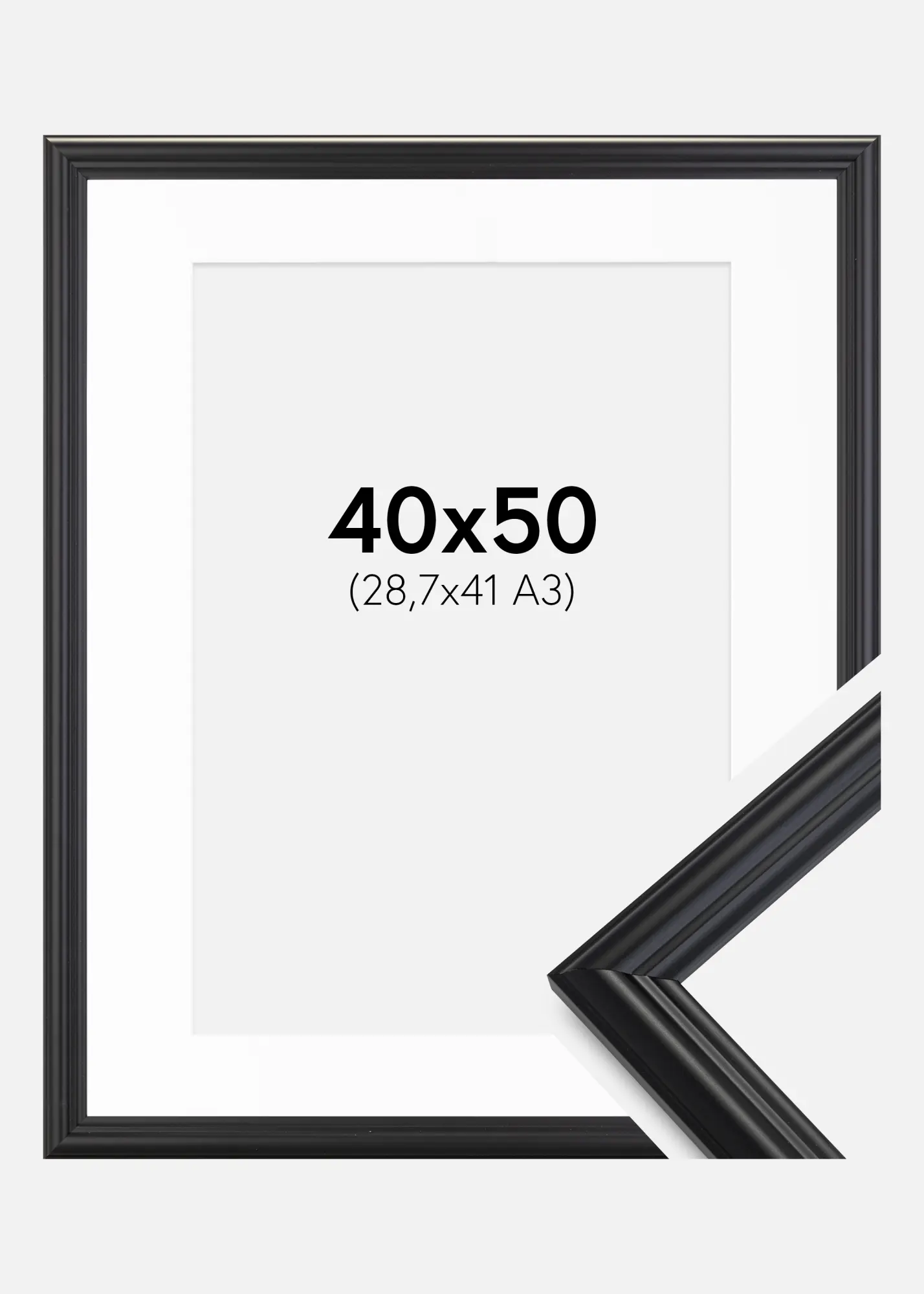 Frame Siljan Black 40x50 cm - Picture Mount White 29.7x42 cm (A3)