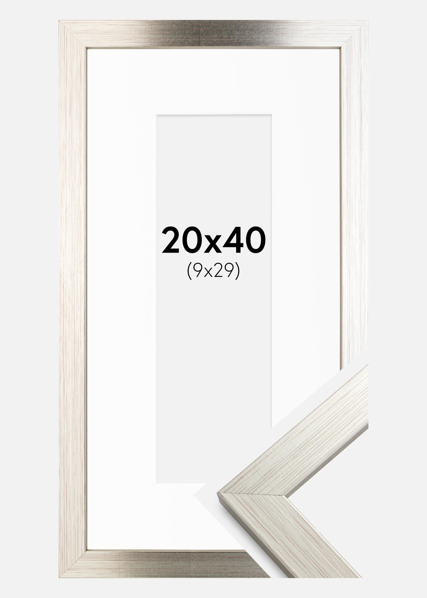 Frame Silver Wood 20x40 cm - Picture Mount White 10x30 cm