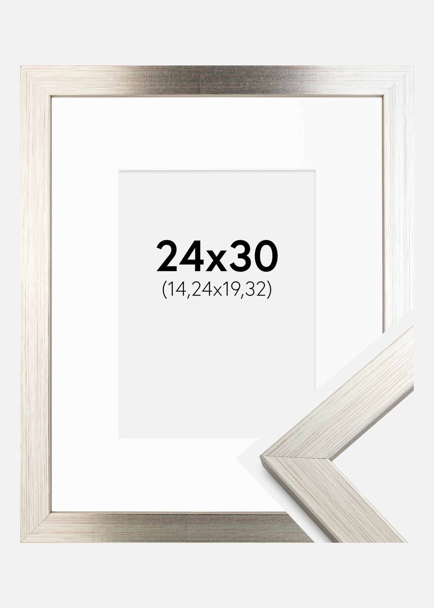Frame Silver Wood 24x30 cm - Picture Mount White 6x8 inches