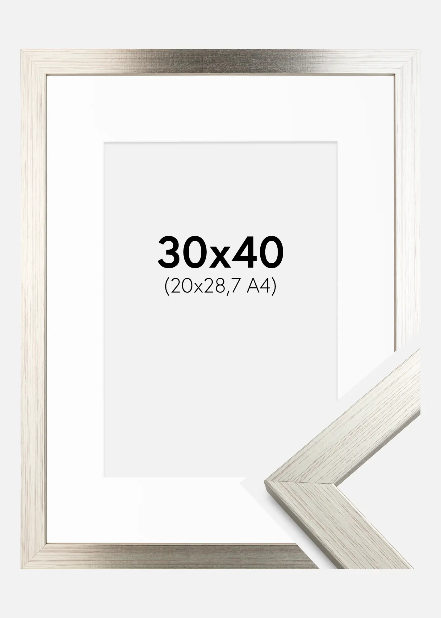 Frame Silver Wood 30x40 cm - Picture Mount White 21x29.7 cm (A4)