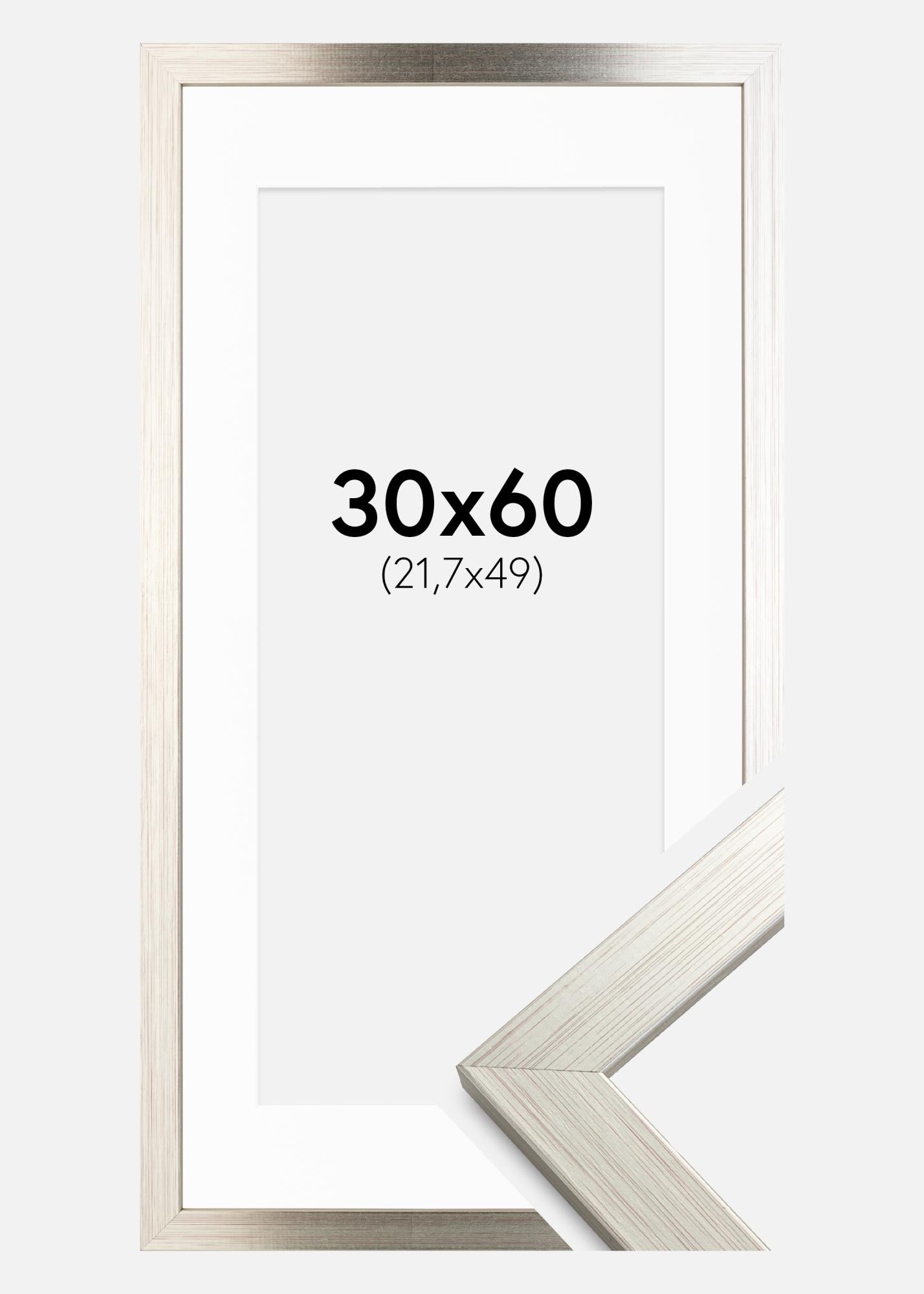 Frame Silver Wood 30x60 cm - Picture Mount White 22.7x50 cm