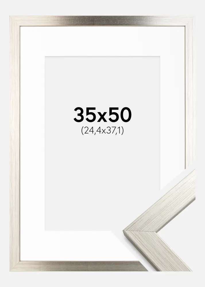 Frame Silver Wood 35x50 cm - Picture Mount White 10x15 inches