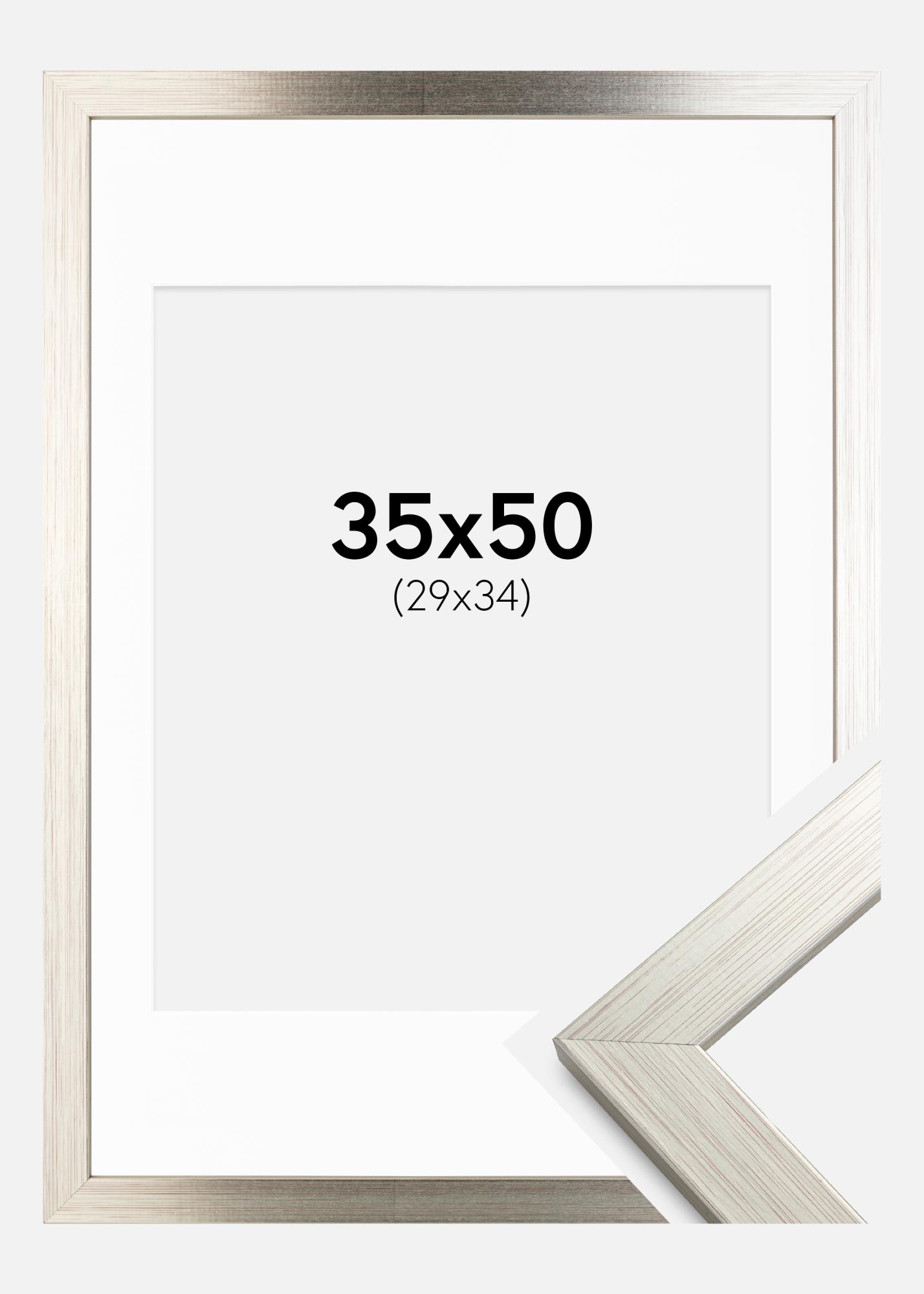 Frame Silver Wood 35x50 cm - Picture Mount White 30x35 cm