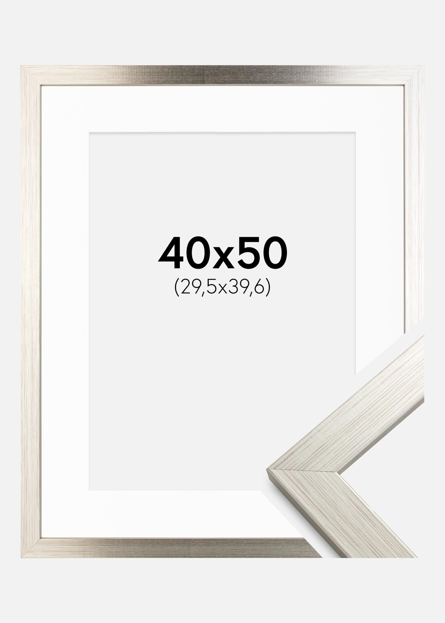 Frame Silver Wood 40x50 cm - Picture Mount White 12x16 inches