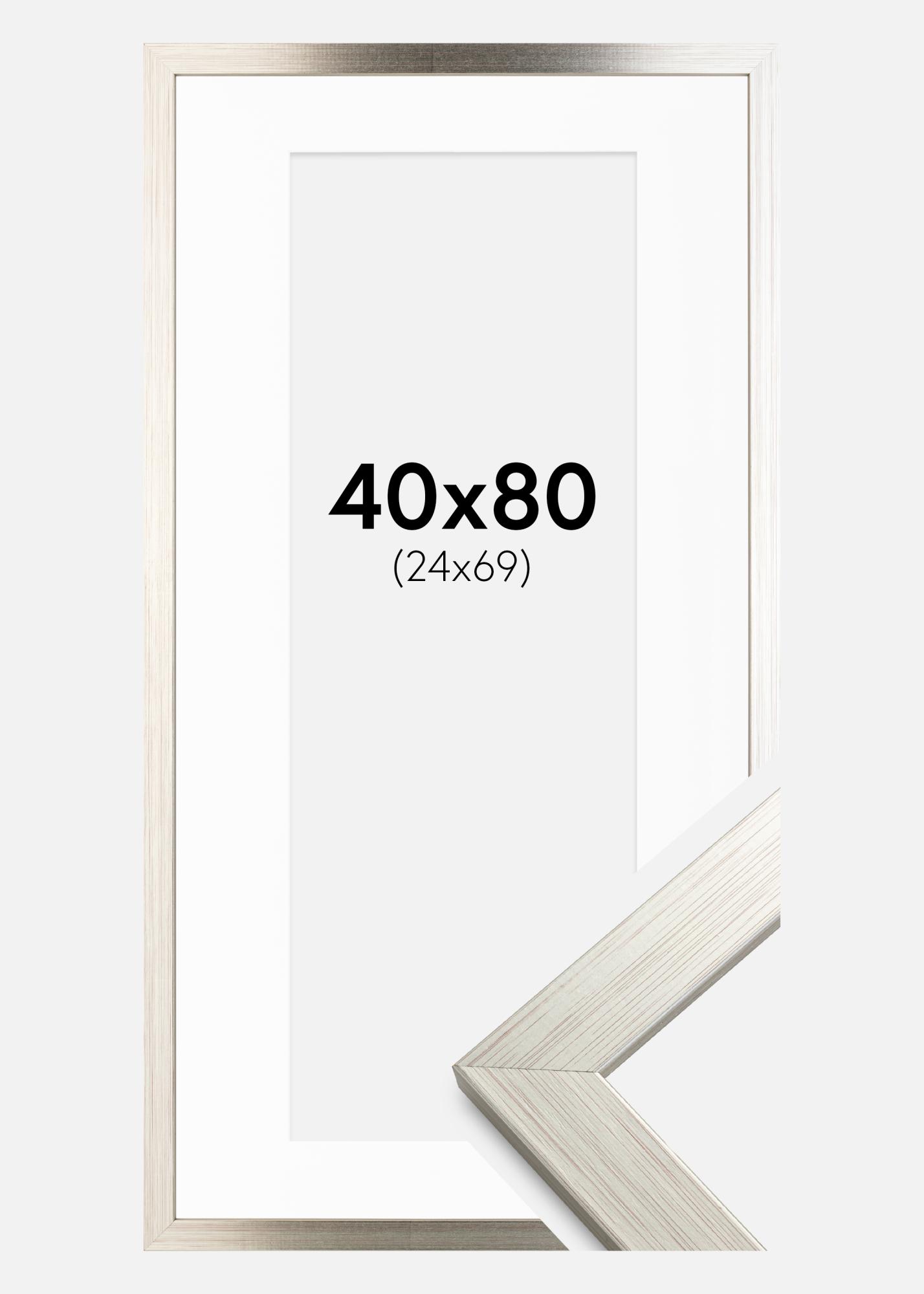 Frame Silver Wood 40x80 cm - Picture Mount White 25x70 cm