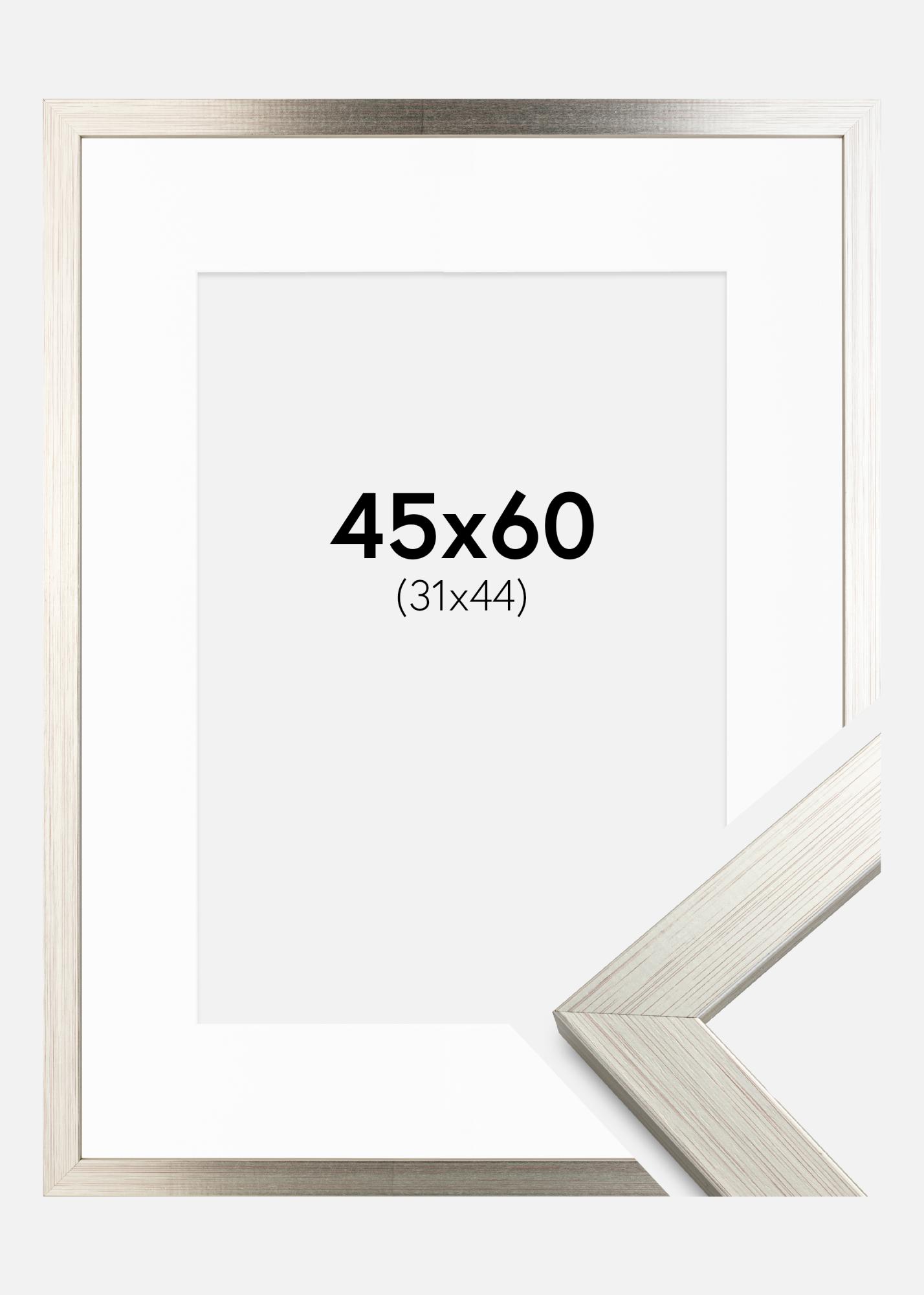 Frame Silver Wood 45x60 cm - Picture Mount White 32x45 cm
