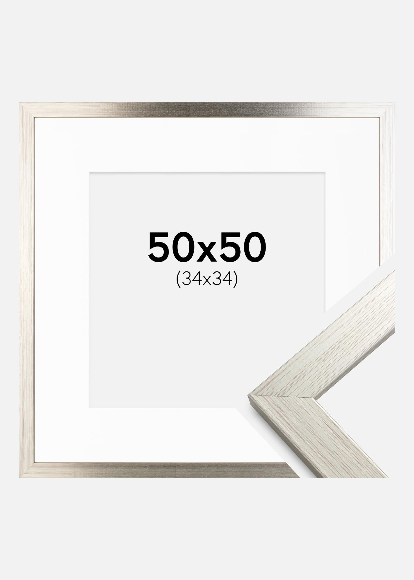 Frame Silver Wood 50x50 cm - Picture Mount White 35x35 cm