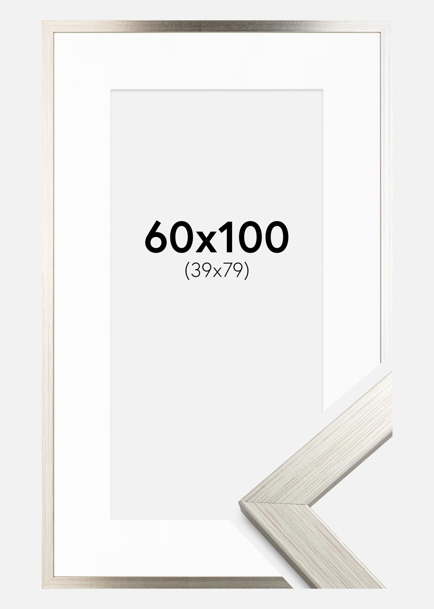 Frame Silver Wood 60x100 cm - Picture Mount White 40x80 cm