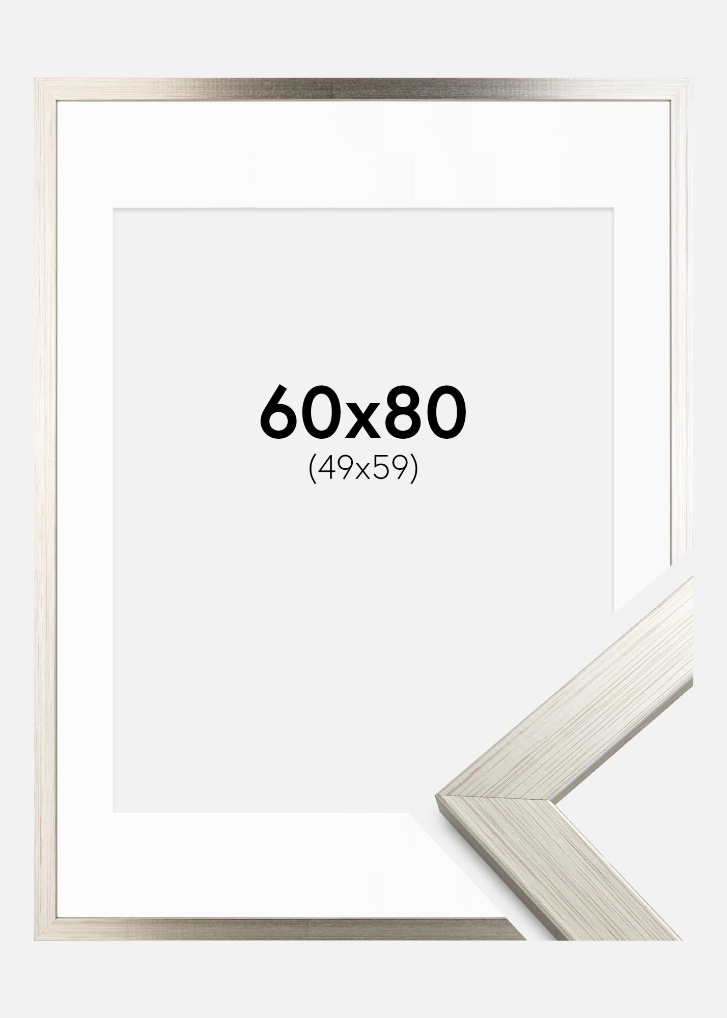 Frame Silver Wood 60x80 cm - Picture Mount White 50x60 cm