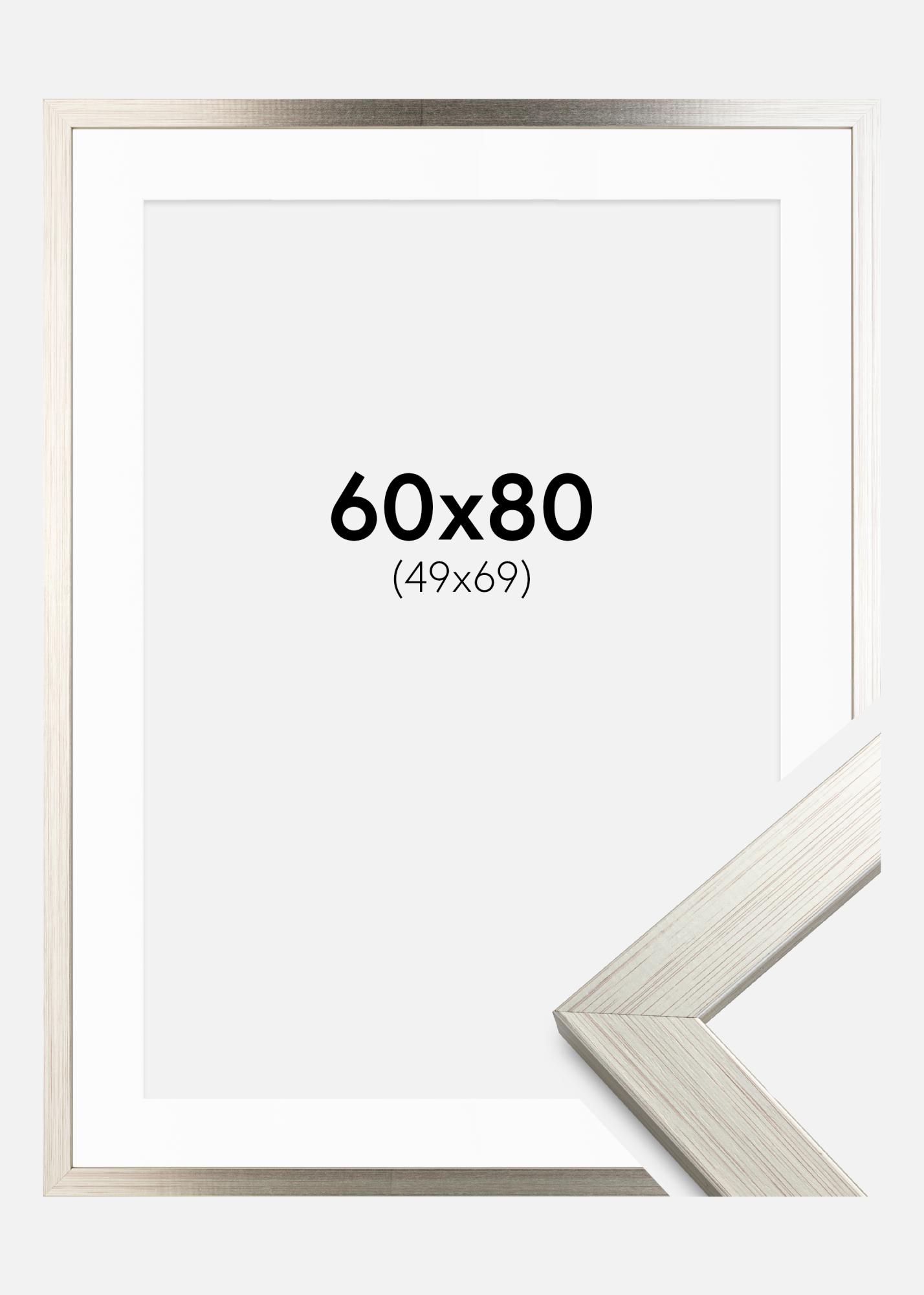 Frame Silver Wood 60x80 cm - Picture Mount White 50x70 cm