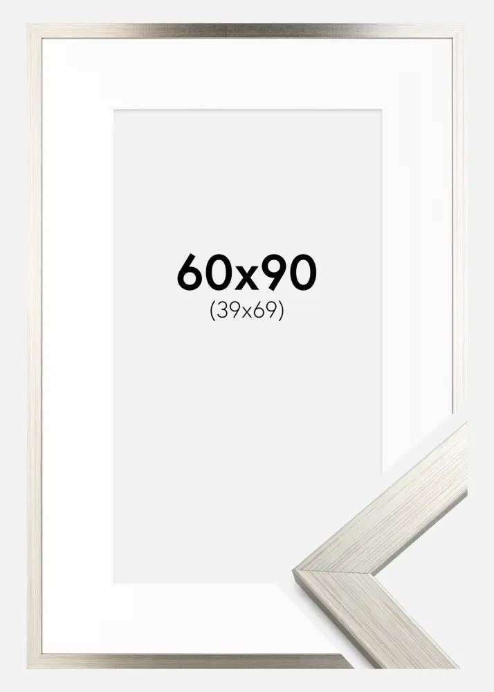 Frame Silver Wood 60x90 cm - Picture Mount White 40x70 cm