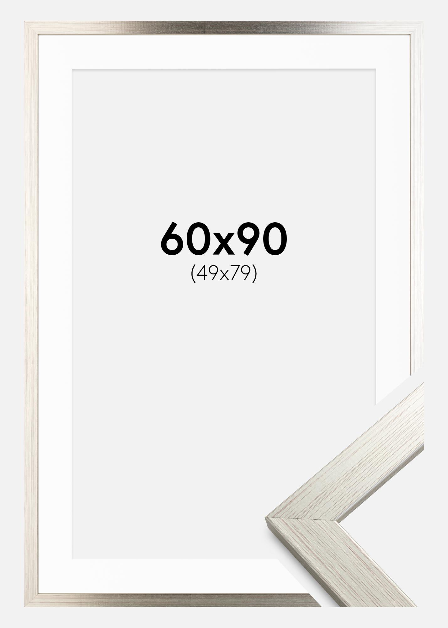 Frame Silver Wood 60x90 cm - Picture Mount White 50x80 cm