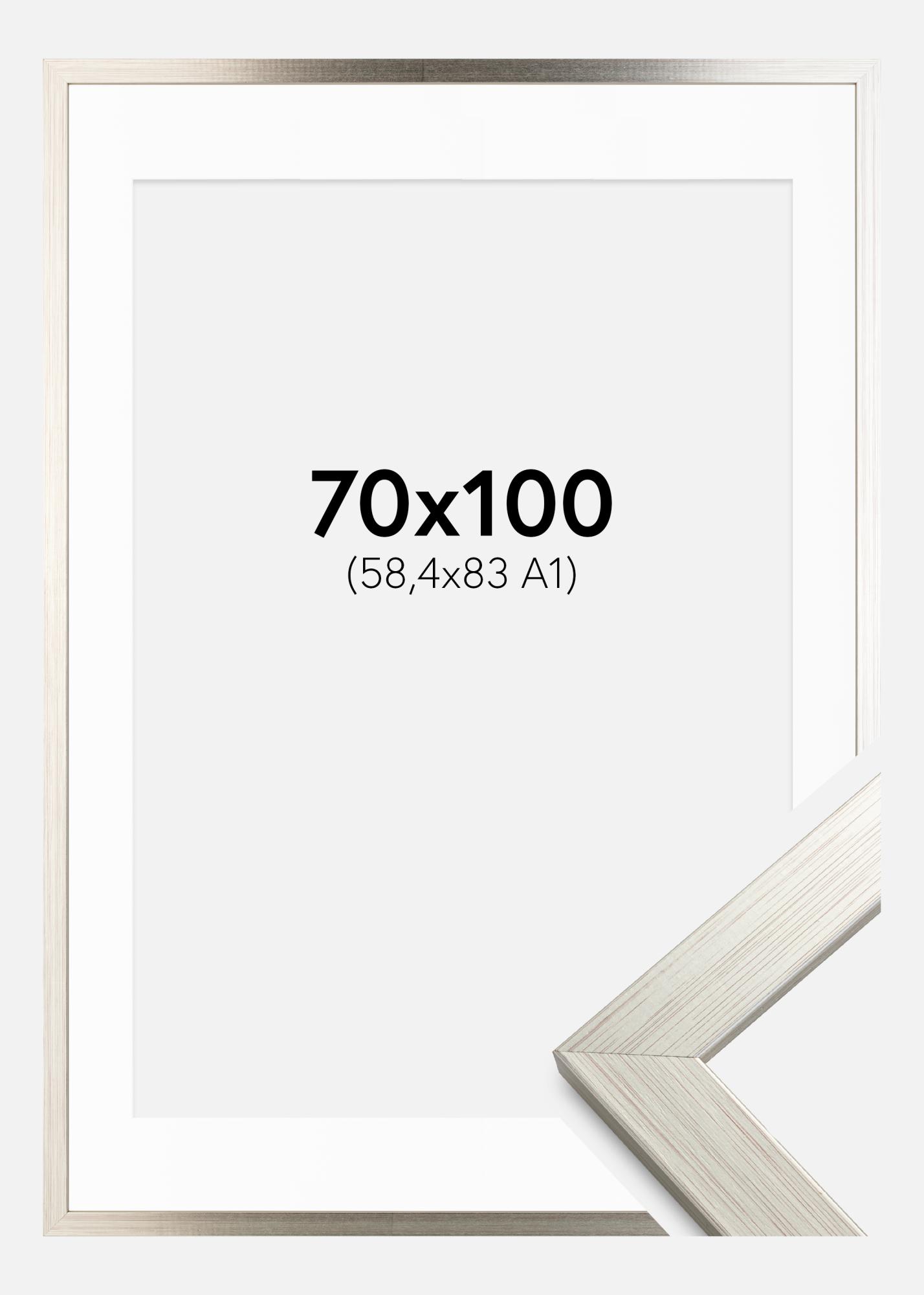Frame Silver Wood 70x100 cm - Picture Mount White 59.4x84 cm (A1)
