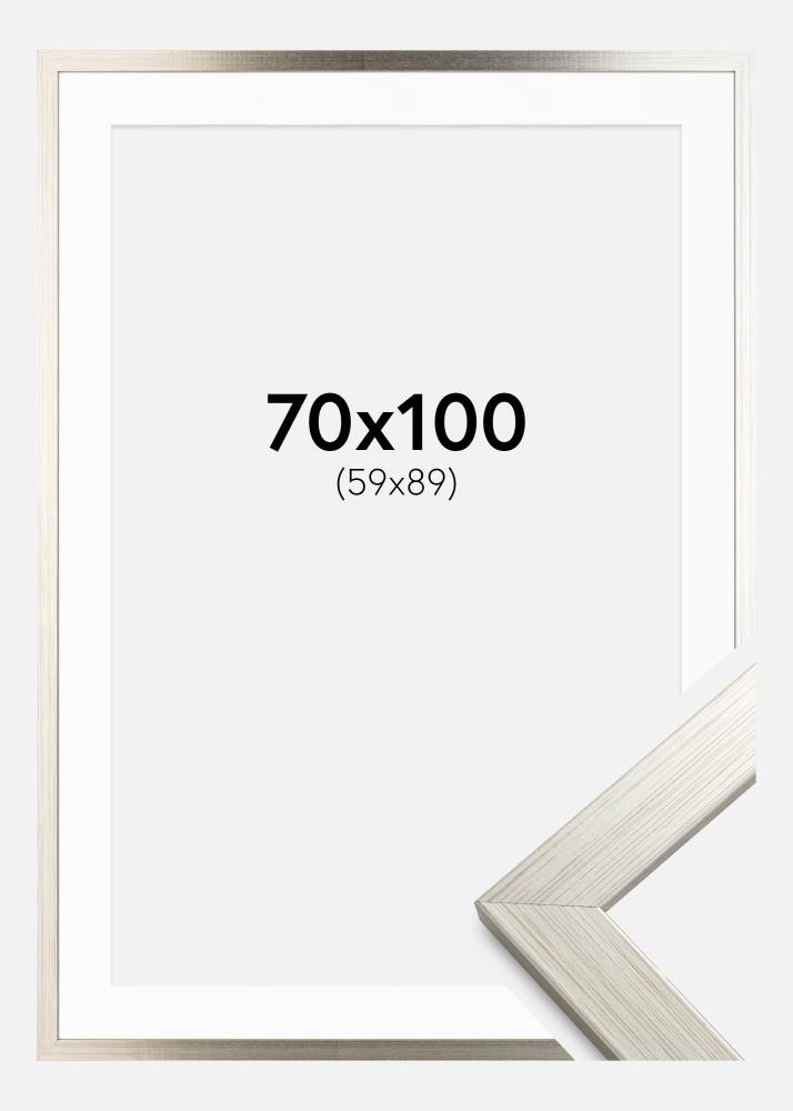 Frame Silver Wood 70x100 cm - Picture Mount White 60x90 cm
