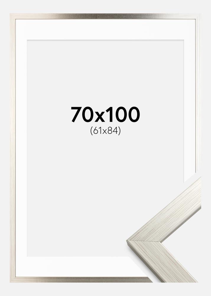 Frame Silver Wood 70x100 cm - Picture Mount White 62x85 cm