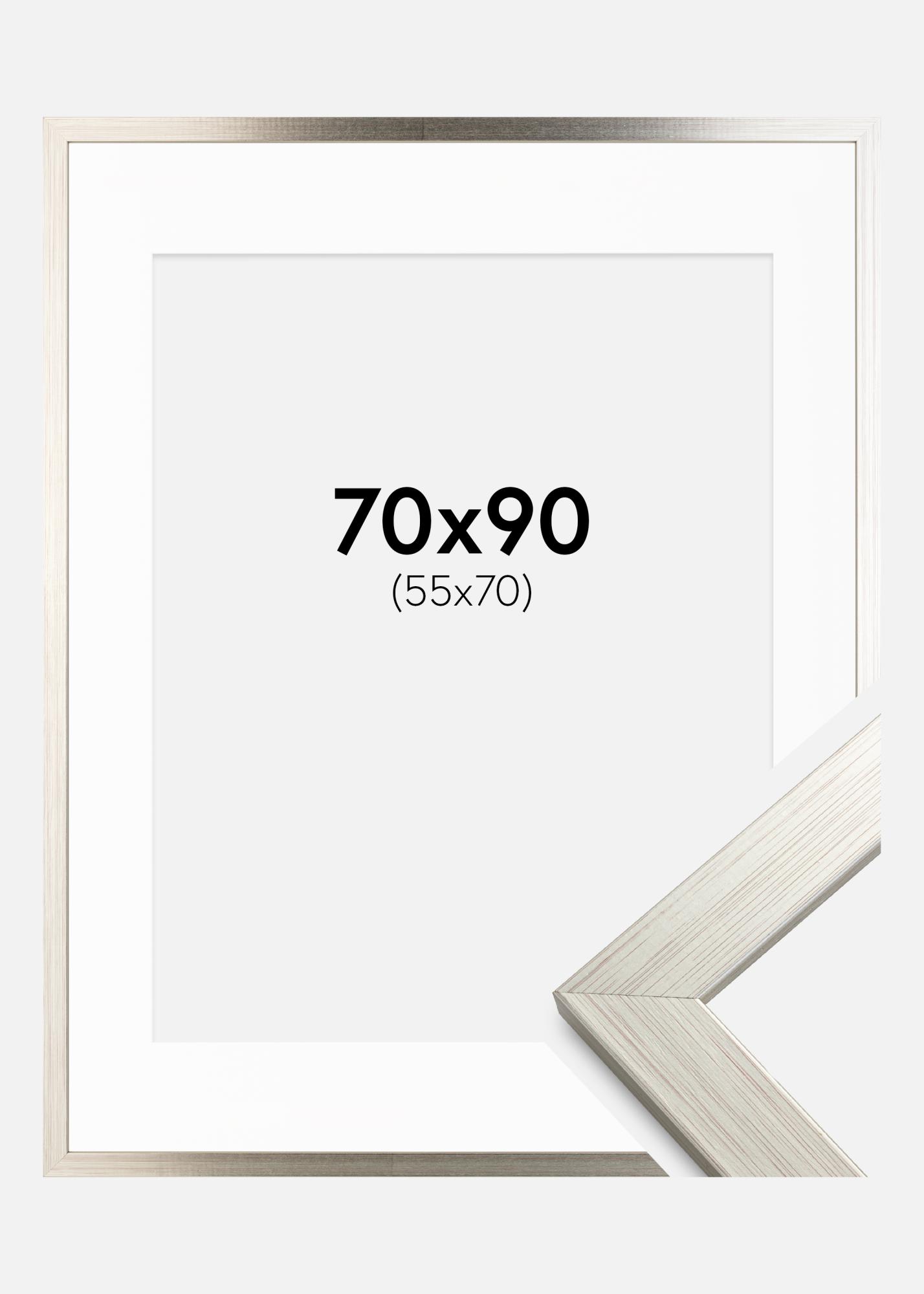 Frame Silver Wood 70x90 cm - Picture Mount White 56x71 cm