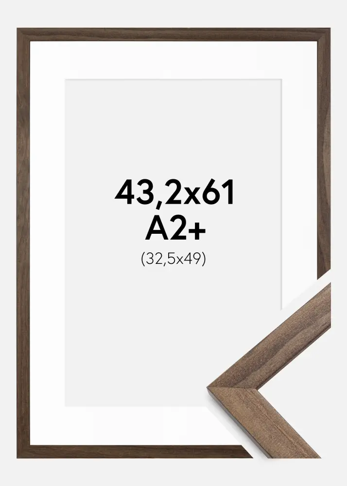 Transform your pictures into artworks with our elegant frame in walnut-patterned design, complete with a white mat. This frame is perfect for highlighting your favorite pictures and giving them a sophisticated framing. With a frame size of 33.5x50 cm and outer dimensions of 45.2x63 cm, it offers a generous framing that really lets your image take center stage.
