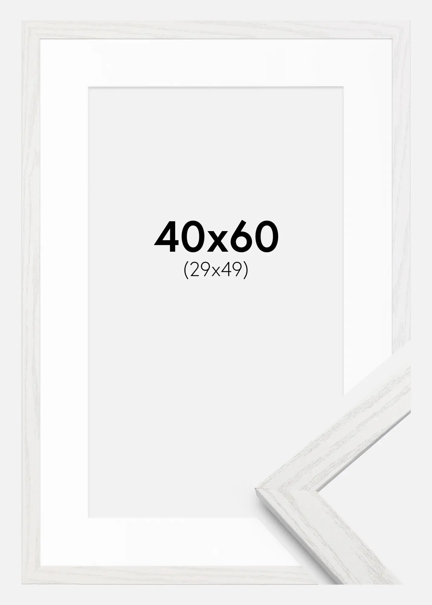 With outer dimensions of 42x62 cm, this frame becomes an impressive detail on the wall, whether you choose to display family photos, artworks, or other memorable pictures. Let this white frame with a passepartout become a part of your home and give your pictures the attention they deserve.