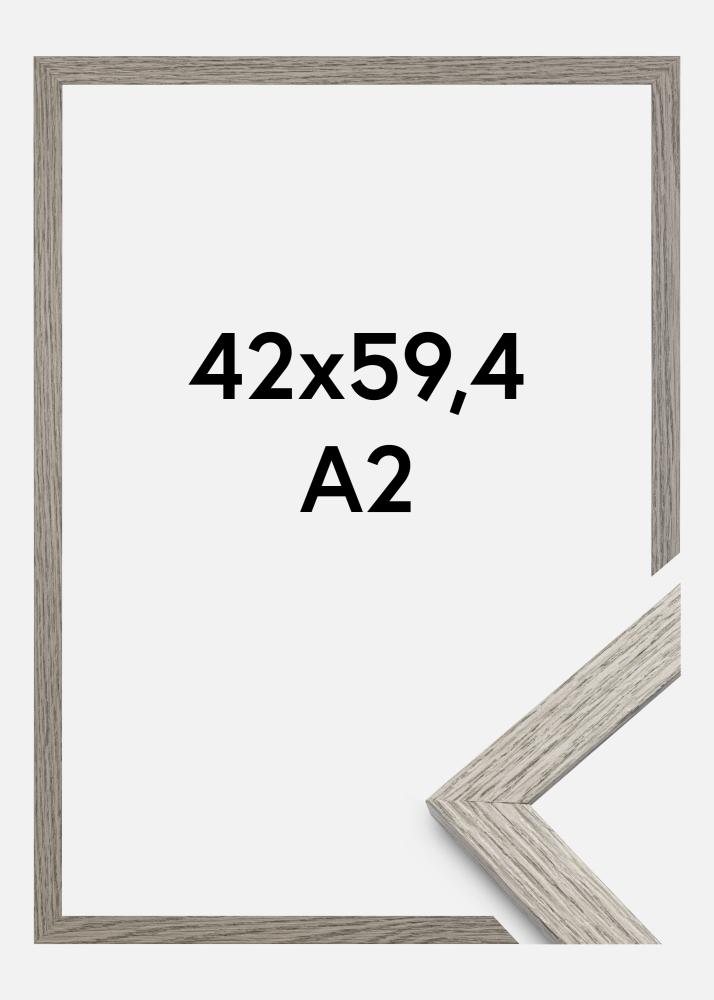 Give your posters and artwork the attention they deserve with our elegant picture frame in gray oak. With a size of 42x59.4 cm (A2), this photo frame is perfect for highlighting your A2 format images. The sleek frame edge is 20 mm wide and adds a sophisticated touch without overshadowing the subject.