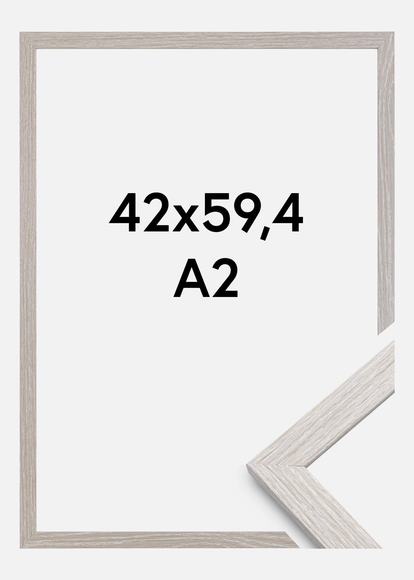 Give your favorite photos the attention they deserve with this elegant picture frame in the size of 42x59.4 cm (A2). The light grey oak color of the frame profile provides a modern and sleek feel that will fit perfectly in any home. With a profile width of 20 mm and a depth of 14 mm, this frame creates a distinct presentation of your artwork or photo.