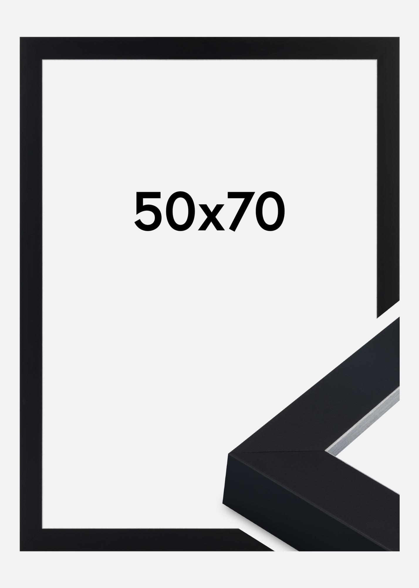 This photo Frame is perfect for showcasing your favourite images in the 50x70 cm size. With a modern and clean design, it offers a smooth, glossy Black surface elegantly outlined by a subtle silver edge. The slim profile gives a pared-back, graphic look, letting your artwork take centre stage.