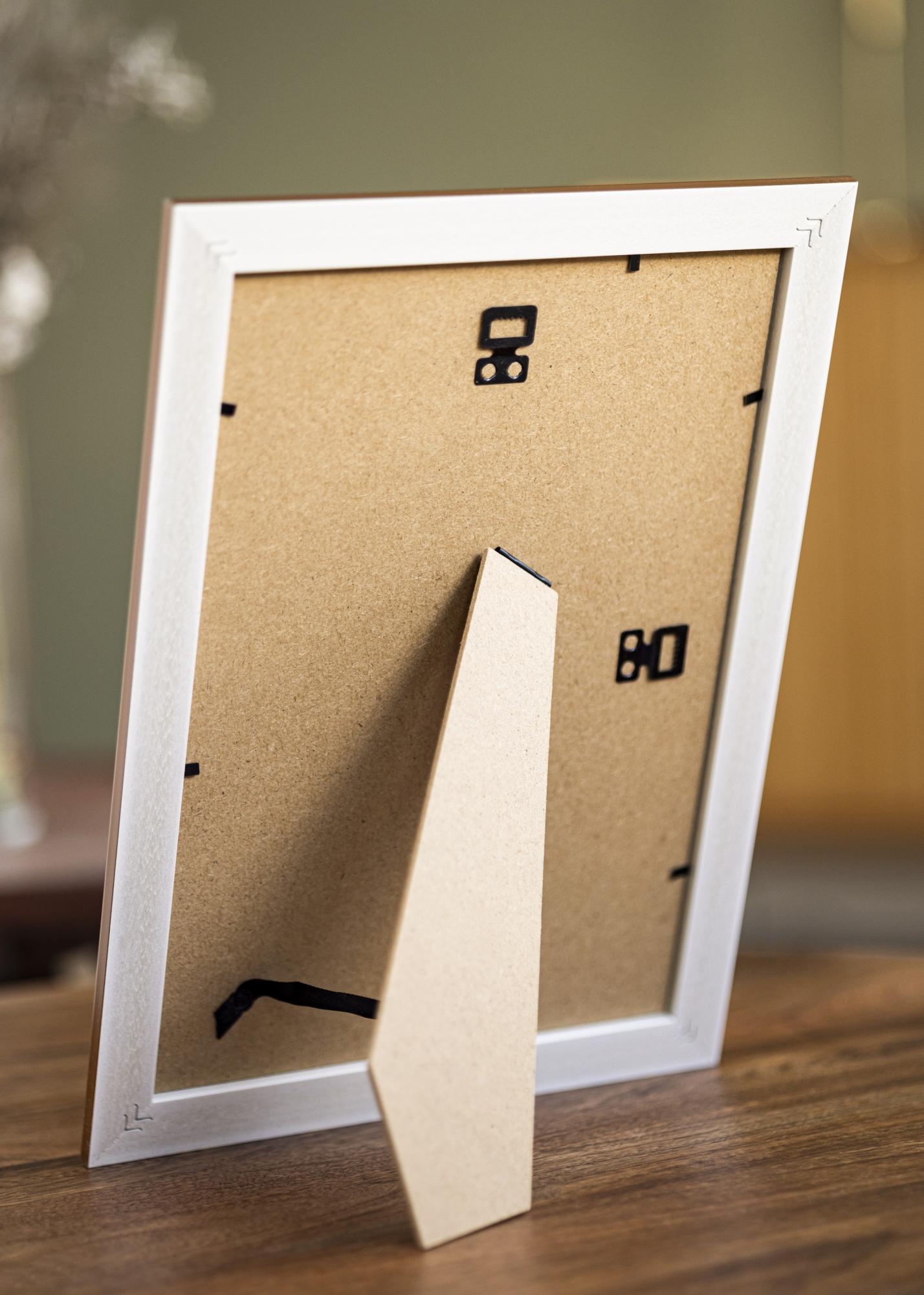 This elegant gold-colored frame with a white mat is perfect for highlighting your favorite pictures in the size 15x21 cm (A5). With a frame width of 28 mm and a depth of 20 mm, it offers a sleek framing that suits most homes.