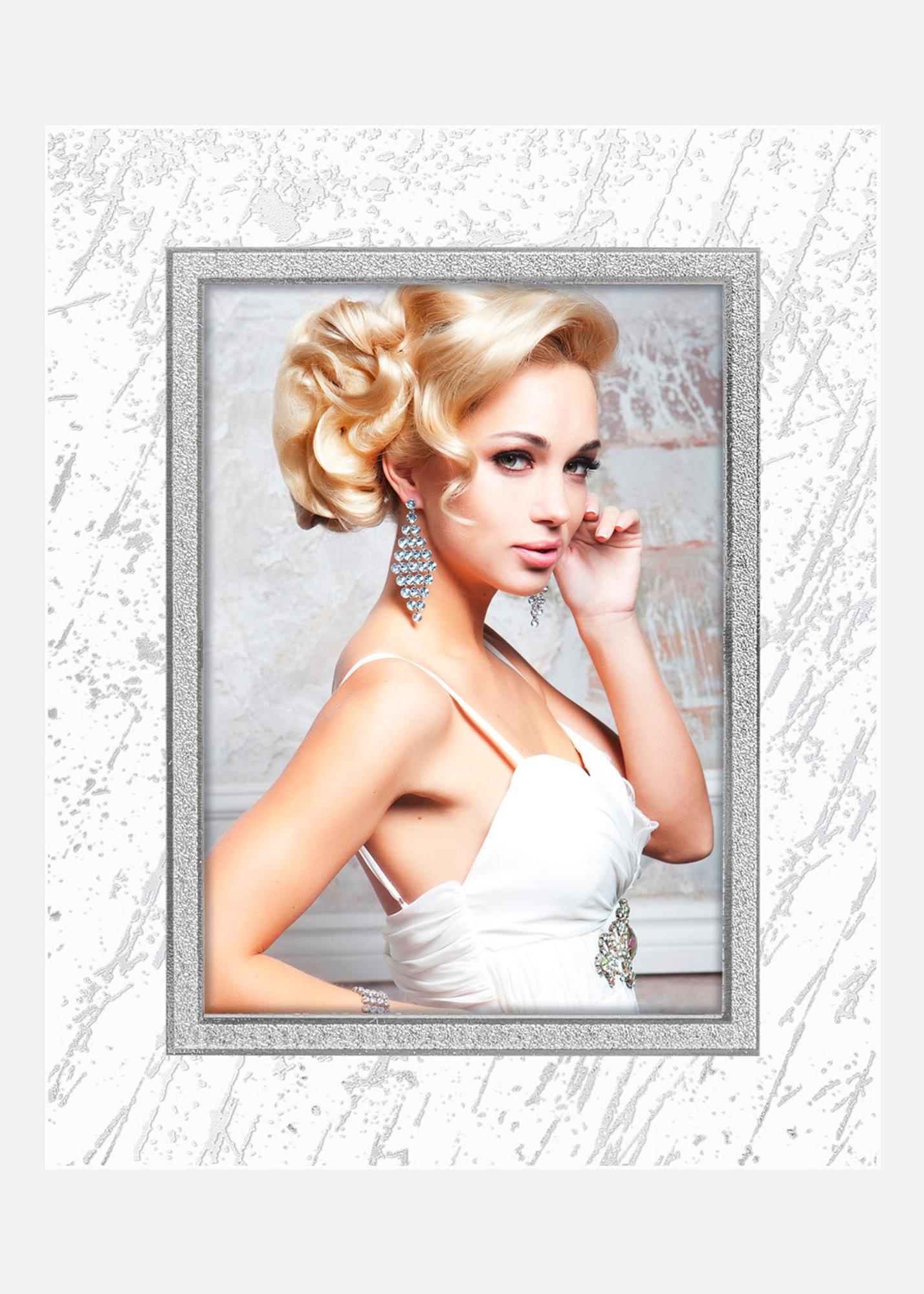 Give your favorite photos the attention they deserve with this elegant photo frame measuring 13x18 cm. The unique combination of a silver-colored edge and a wide profile, where silver meets white, creates a sophisticated framing for your memories.