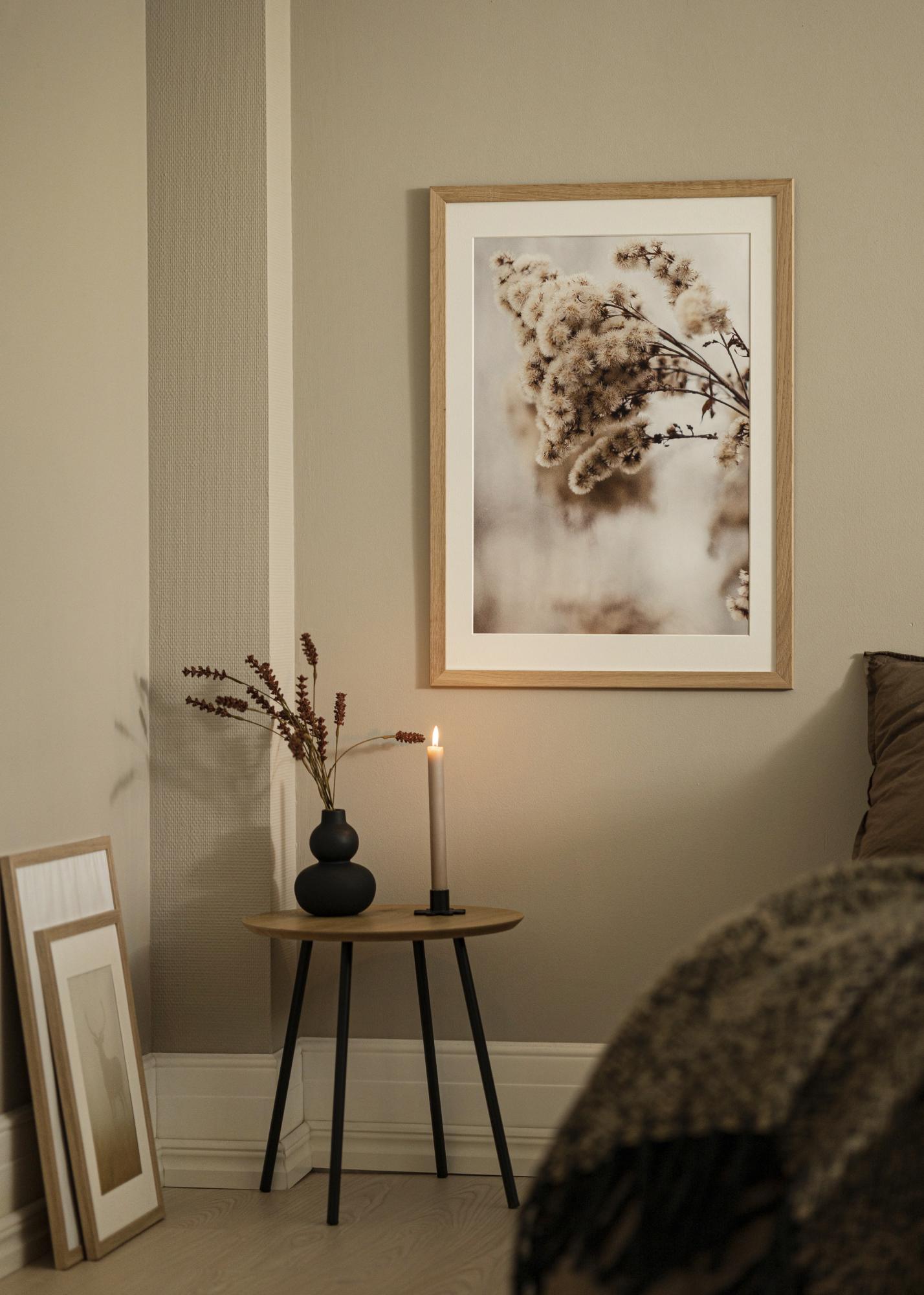 Trendline Acrylic Glass Oak is a solid wood frame that provides a beautiful setting for all your favourite motifs. The frame is made of oak wood and the natural shade of oak becomes a perfect complement to both classic photographs and modern prints. To mount your pictures in the frame, you release the back of the frame, which is held in place by small flexible pins, and place your motifs next to the glass.