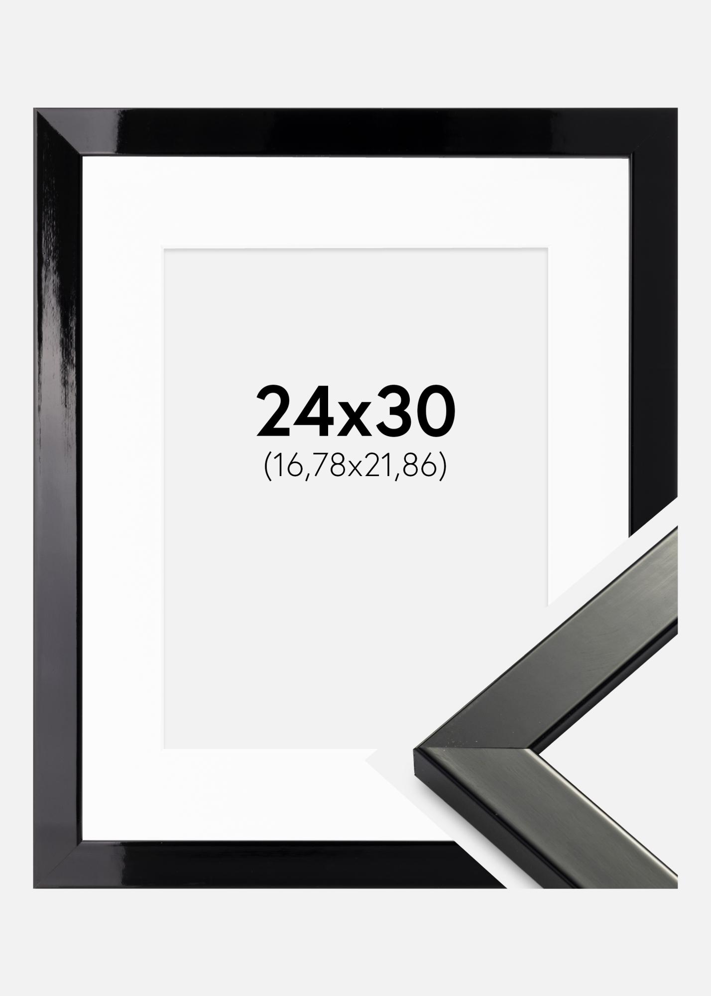 Frame Uppsala Black High gloss 24x30 cm - Picture Mount White 7x9 inches