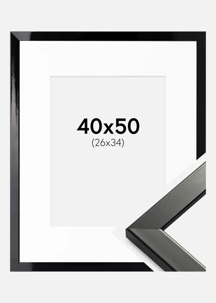 Frame Uppsala Black High gloss 40x50 cm - Picture Mount White 27x35 cm