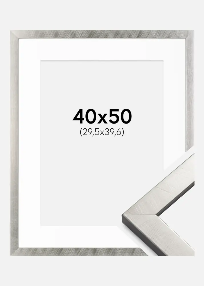 Frame Uppsala Silver 40x50 cm - Picture Mount White 12x16 inches
