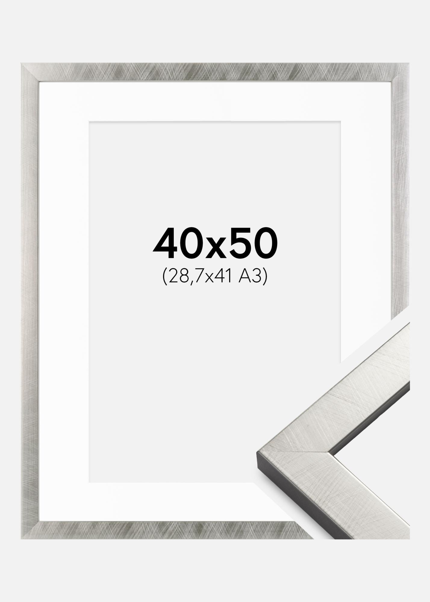 Frame Uppsala Silver 40x50 cm - Picture Mount White 29.7x42 cm (A3)