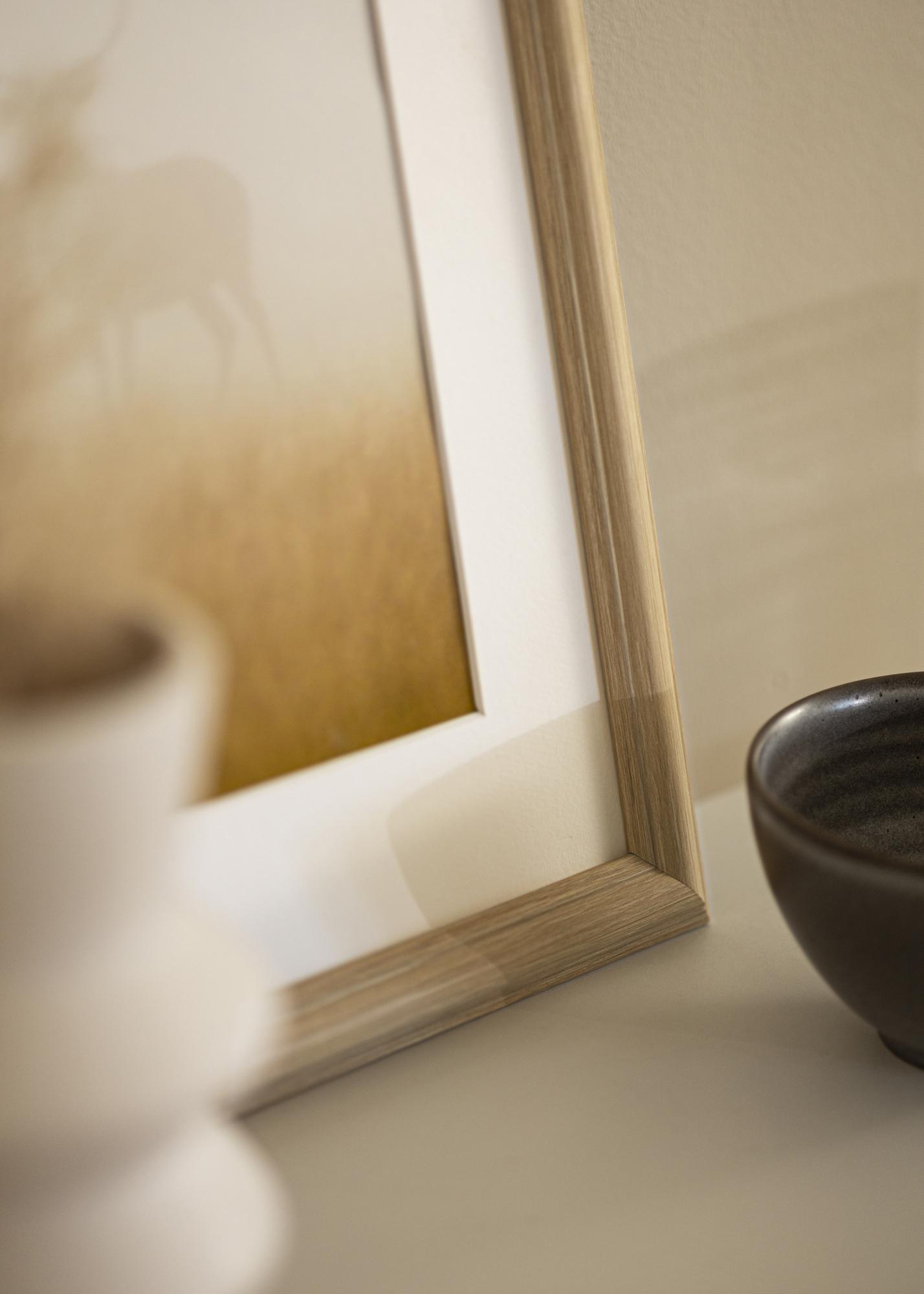 Give your favorite photos the attention they deserve with this profiled oak patterned wood frame. Measuring 35x50 cm, this photo frame is perfect for showcasing both portraits and landscapes. The 31 mm wide frame border provides a sturdy and elegant framing for your photographs.