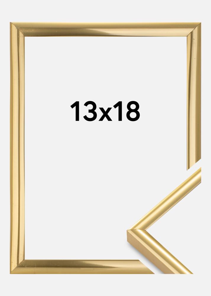 Give your favorite photos the attention they deserve with this elegant 13x18 cm gold-colored picture frame. With its glossy finish and classic design, this frame will add a touch of luxury to any room. The frame's width is 7 mm, providing a nice and discreet border for your photograph or artwork.