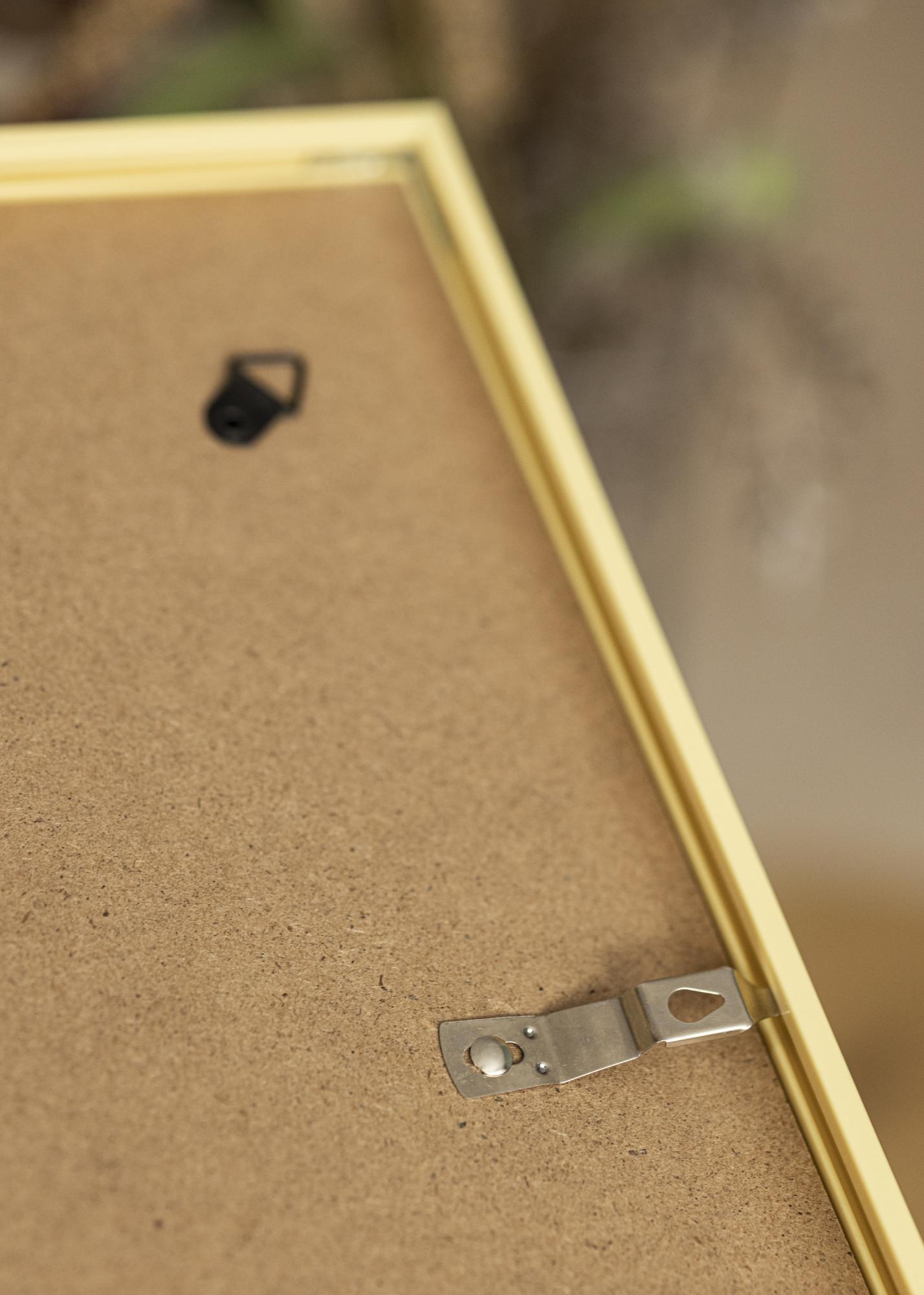 The frame is equipped with crystal clear acrylic glass which is also both lightweight and unbreakable. On the back, you will find a backing in HDF, which is held in place by swivel metal clips. To insert your motifs into the frame, you twist the clips and remove the backing. On the back of the frame, there are also wall mounts, and you can choose whether you want to hang your frame in portrait or landscape orientation.