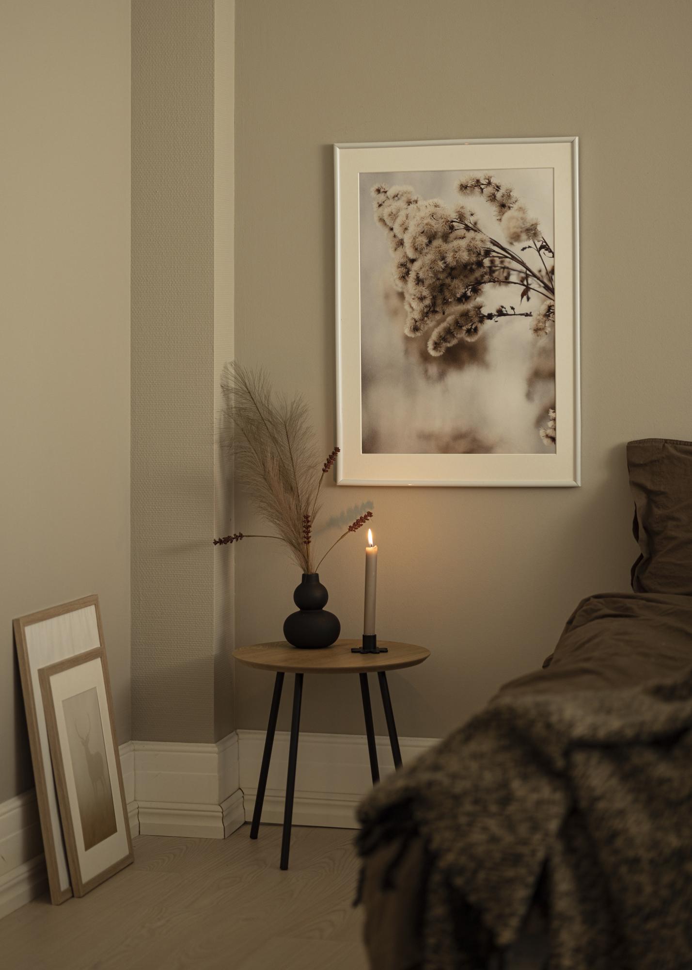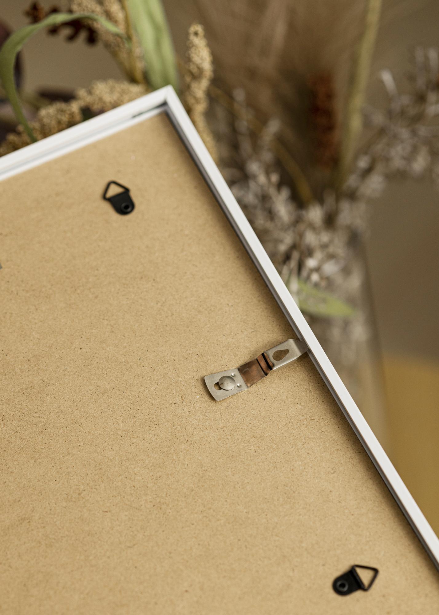 With this picture frame, your subjects can receive a modern framing, thanks to the frame's thin frame list with a glossy finish. The white colour ensures that it matches well with various types of subjects, such as posters, drawings, or family photos. With an inner depth of 15 mm, you have plenty of space to complement this frame with a passe-partout, thereby giving your pictures a more airy framing with even more focus on the subject. To mount your pictures, you twist the metal clips on the back of the frame, remove the back piece, and place the subjects in the frame.