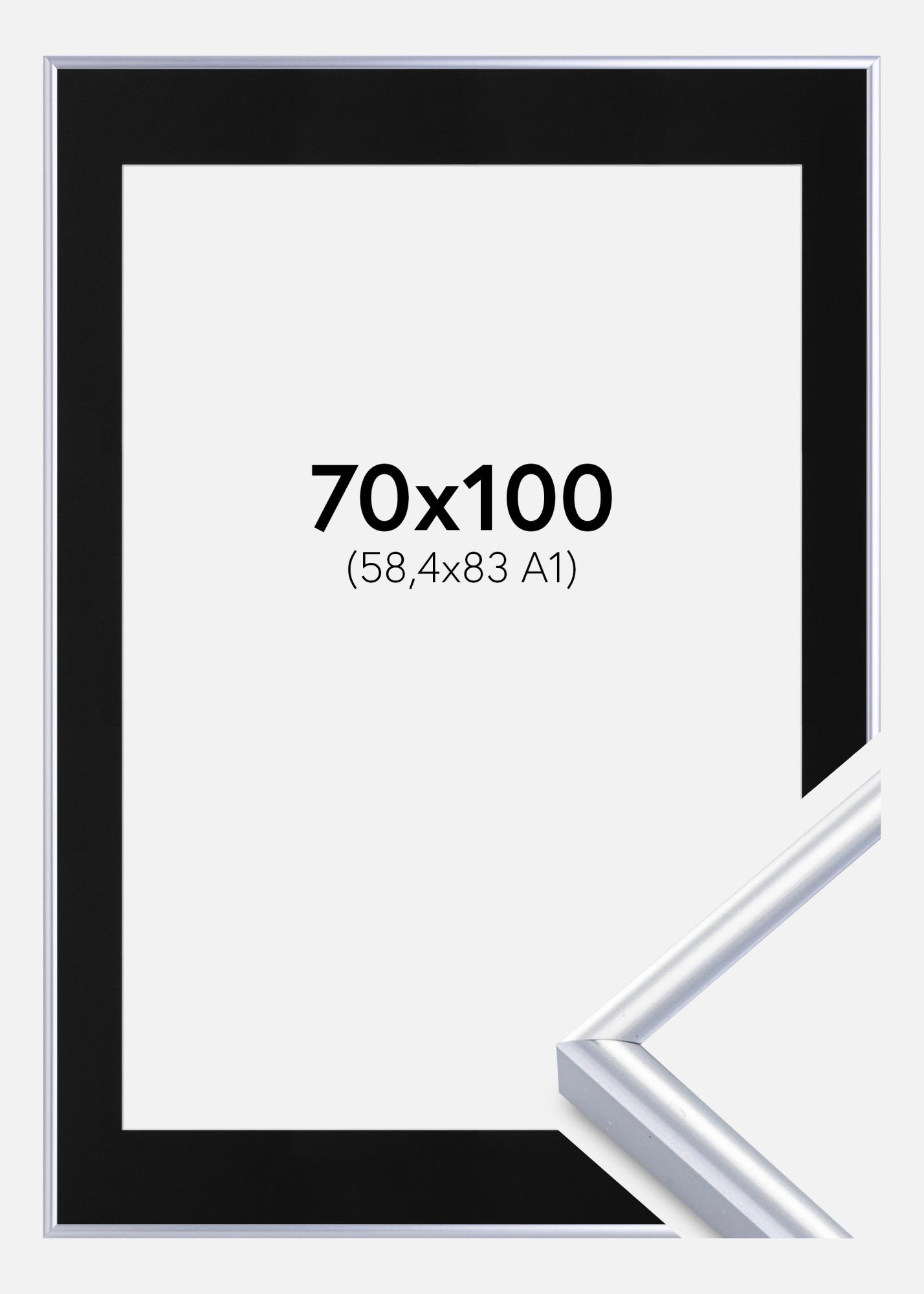 Frame Victoria Silver 70x100 cm - Picture Mount Black 59.4x84 cm (A1)