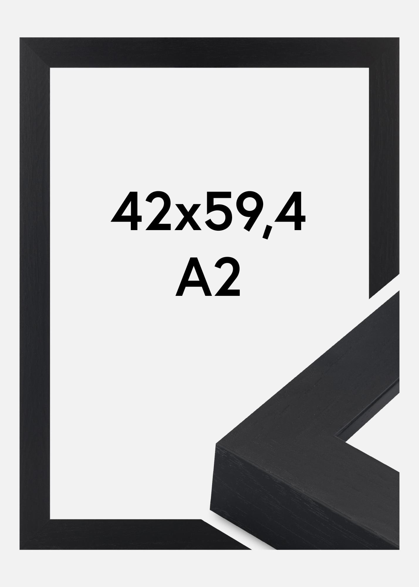 This stylish picture Frame in Black wood is perfect for showcasing your favourite images. With a size of 42x59.4 cm (A2), it offers an elegant setting that suits both colourful and black-and-white pictures. The matte finish and straight profile create a timeless look that blends seamlessly into both modern and classic interiors.