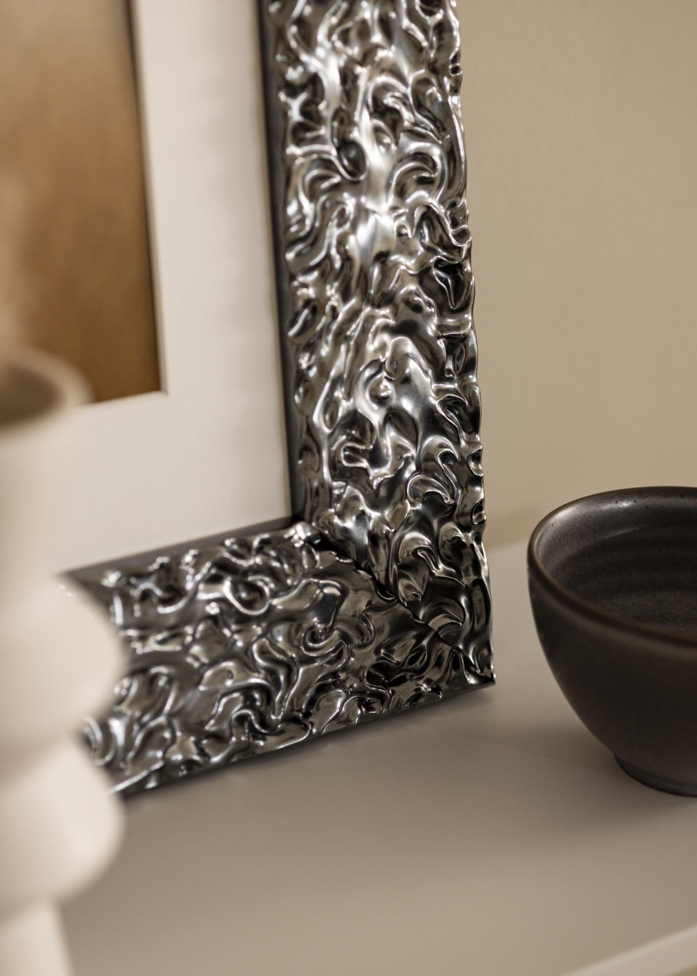Frame Westminster Chrome is a custom-made photo frame manufactured in our own framing workshop, giving you the opportunity to have a photo frame that fits perfectly for your specific motif. With its bold and elegant design in high-gloss silver finish, this frame becomes a stylish addition to your home. The reflective surface and the intricate pattern create a lively texture that highlights your motif in an exclusive way.