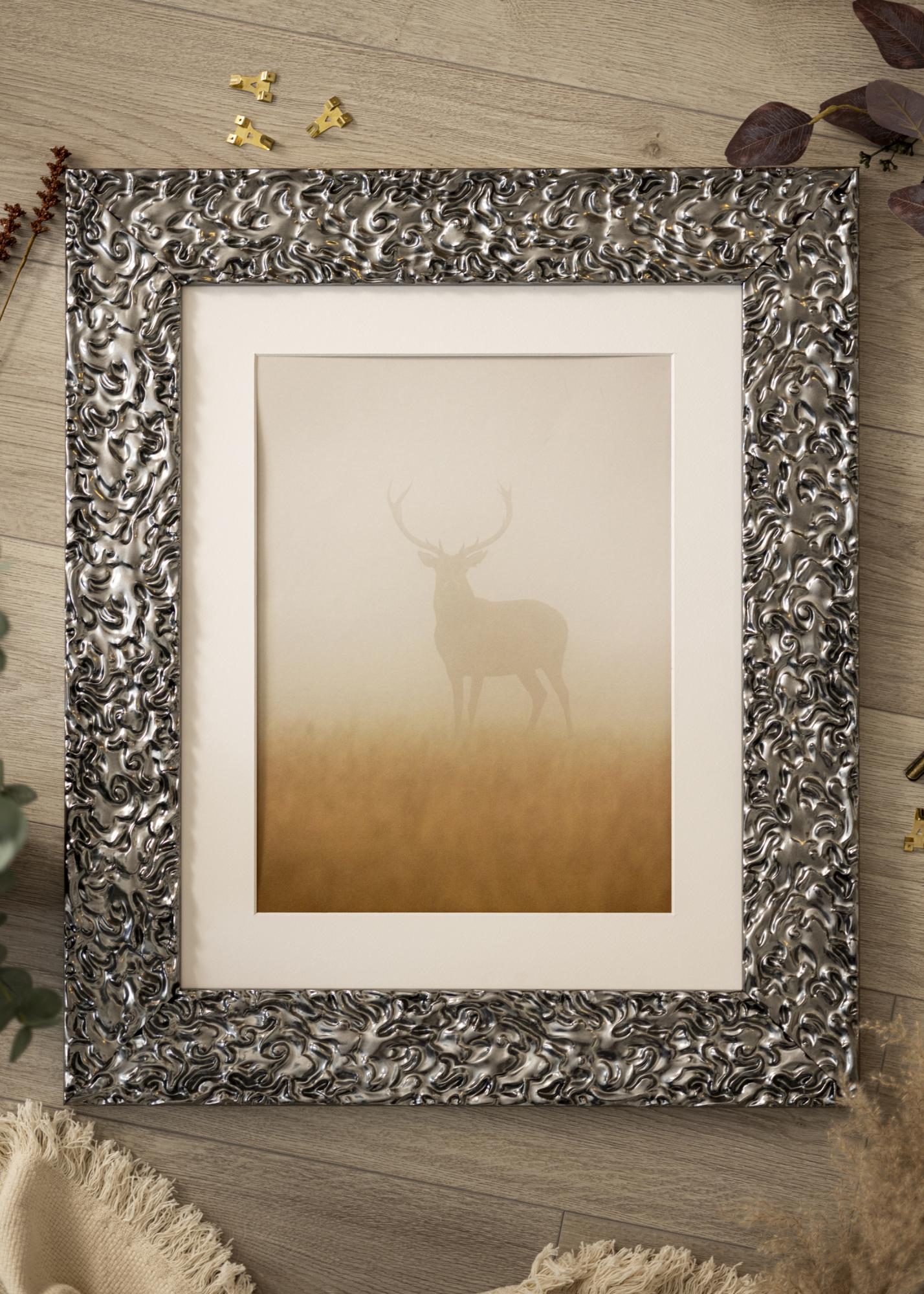This photo frame has a wide frame strip of 81 mm and a depth of 23 mm, which gives it a robust and impressive presence on the wall. Made of pine, it combines durability with aesthetics, making it an excellent choice for both modern and classic interiors. The silver color gives a luxurious feel and can be easily matched with different color themes in your home.