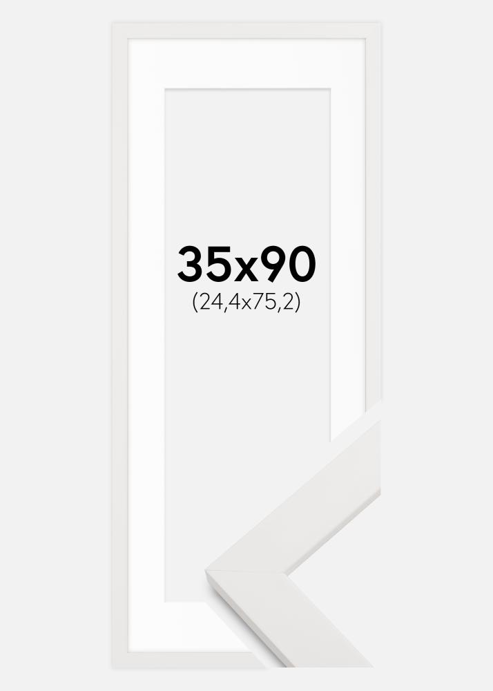 Frame White Wood 35x90 cm - Mounts White 10x30 inches