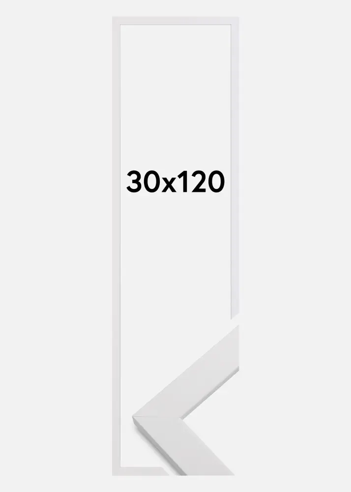 Give your walls a fresh and stylish touch with this elegant white photo frame. With its dimensions of 30x120 cm, it's a perfect fit for showcasing long and narrow artworks or photographs. The 22 mm wide frame border provides a subtle framing without overshadowing the focus of the piece.