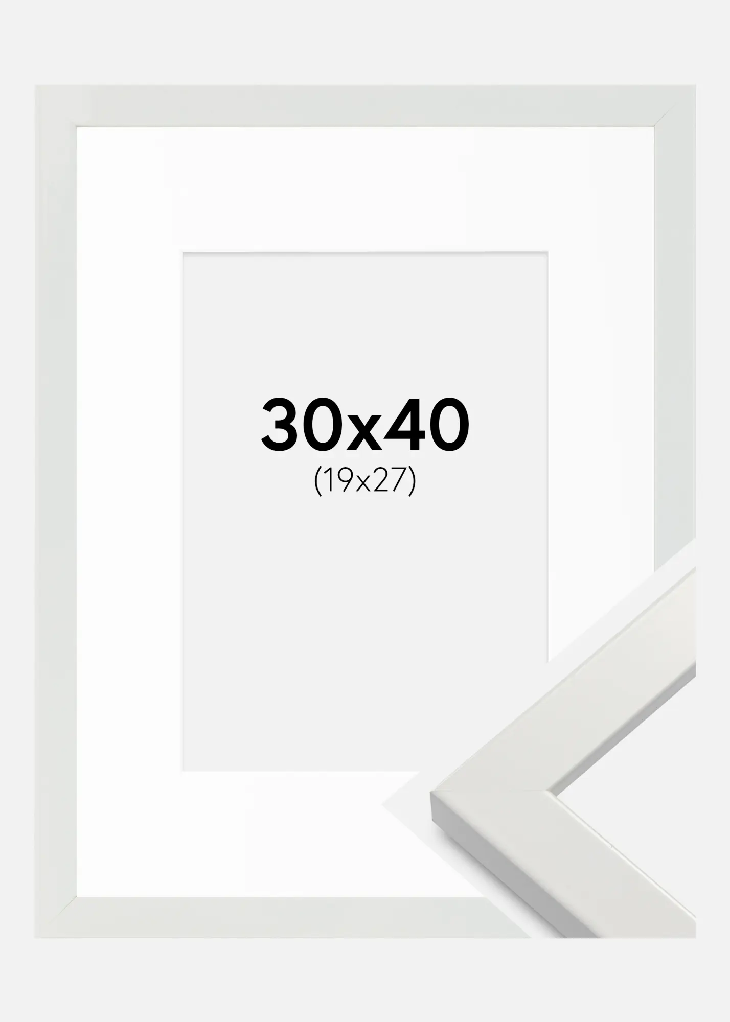 Frame White Wood Glossy 30x40 cm - Picture Mount White 20x28 cm