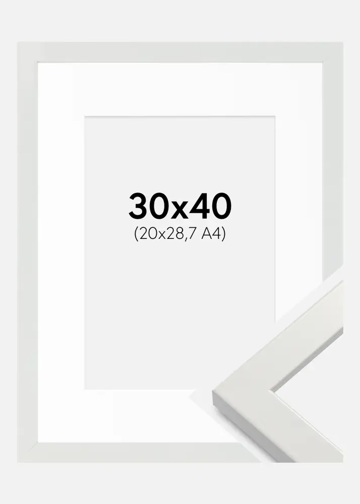 Frame White Wood Glossy 30x40 cm - Picture Mount White 21x29.7 cm (A4)