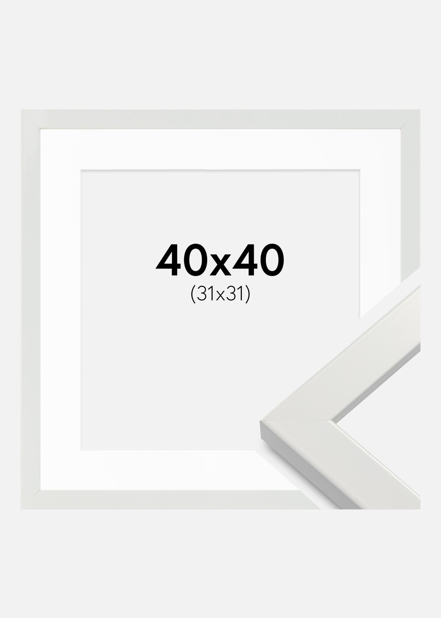 Frame White Wood Glossy 40x40 cm - Picture Mount White 32x32 cm