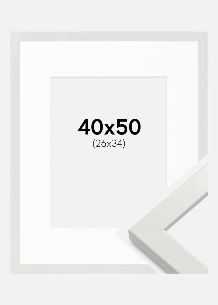 Frame White Wood Glossy 40x50 cm - Picture Mount White 27x35 cm