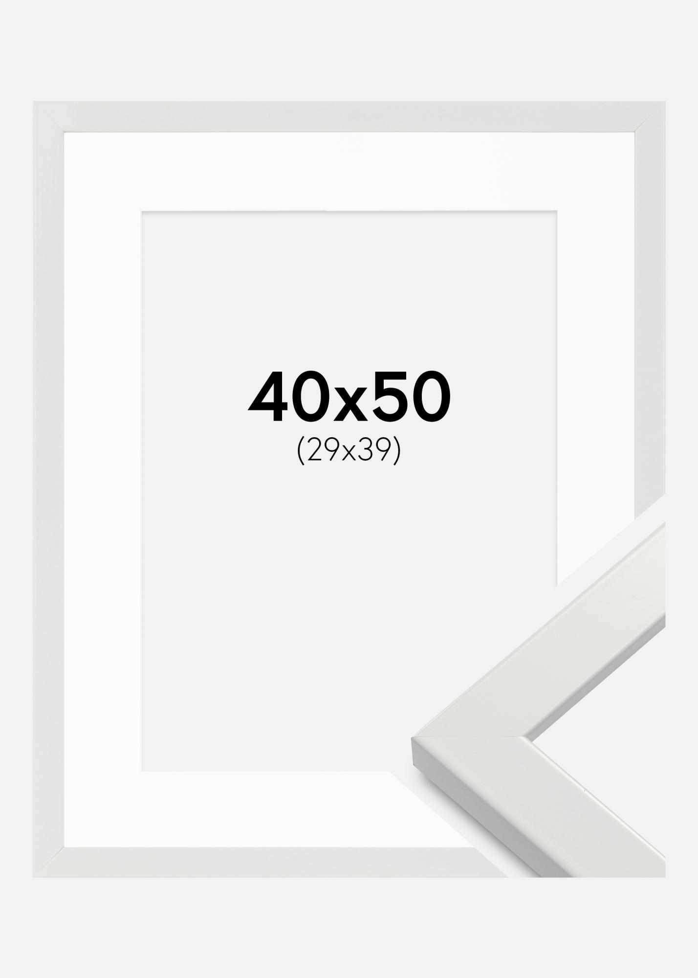 Frame White Wood Glossy 40x50 cm - Picture Mount White 30x40 cm